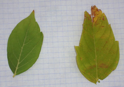 Fulles compostes, formades per 3-7 folíols de forma ovalada i amb la vora serrada que s’estrenyen progressivament cap a l’àpex. Els marges són rosats, blancs a l’estiu. Tenen el revers de color verd i l’anvers més pàl·lid. Mesuren entre 7 i 10 cm de longitud.