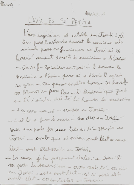 - Segmentació d’una part del text font al ordinador: trobar les unitats que es poden separar (títol, paràgrafs, narració versus diàlegs).