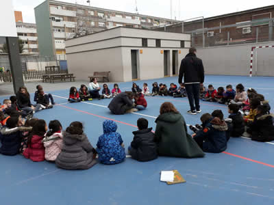 P3, P4 i P5 ens ajuntem tots al pati per jugar tots junts el dia de la PAU. Aprenen nous jocs : la bomba, el gat i el ratolí, terra i mar, i la gallineta cega. En ho hem passat molt bé. |