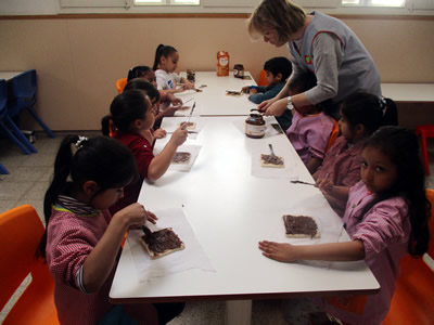 Avui els coets, les llunes i les astronautes ens hem ajuntat al menjador per fer la Mona. Per celebrar l'aniversari de l'escola, hem fet mones de lletres `per posar "FELICITATS CONXI".