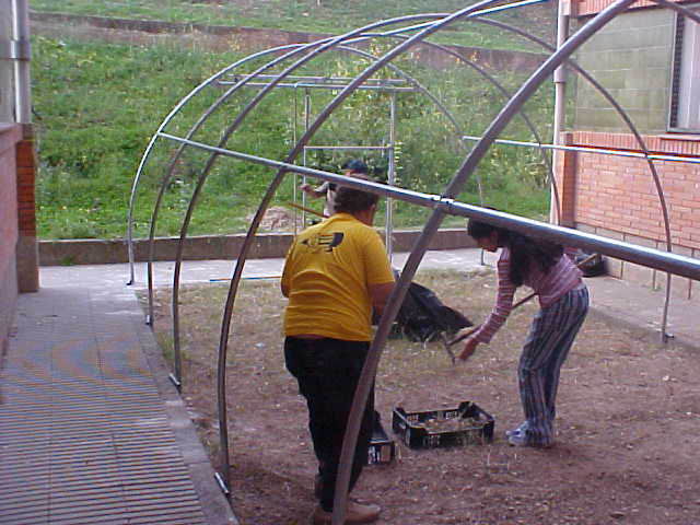 Fem l’hivernacle Al CEIP Taquígraf Garriga hem muntat un hivernacle, hem donat un pas més després de l’hort, posat en funcionament el curs 2003/2004 pels alumnes de 6è amb la seva tutora (Maria Jesús) al cap davant. Després de moltes dubtes i de molt exposar idees, hem pensat que havia d’ésser quelcom diferent, una activitat que impliqués a tothom i no estigui subjecta a les inclemències del temps, des del primer moment l’equip directiu va donar suport a la idea. A principis del mes de setembre, després d’àrdua búsqueda vam anar a Olot a buscar l’hivernacle, un hivernacle tubular de 3’5 m d’amplada i 7’5 m de llargària, just l’espai reservat per a ell. Començat el muntatge apareixen les primeres dificultades, els serveis municipals ens donen un cop de mà fent-nos els forats on han d’anar ficats cada un dels arcs que formen l’hivernacle