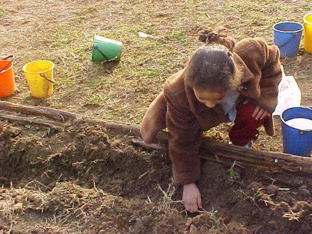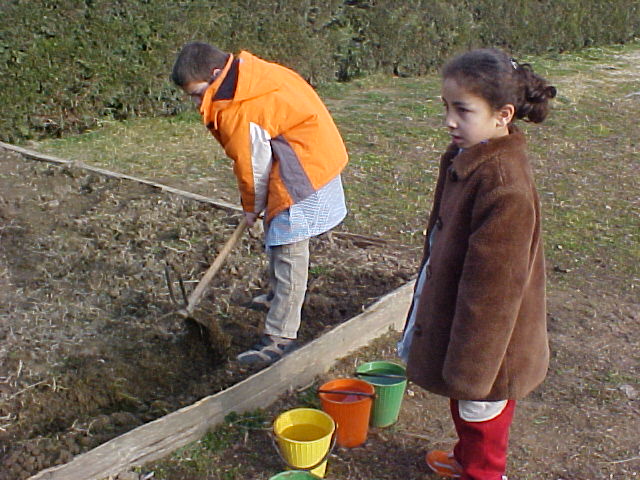 *Primer de tot, cavem l'hort i hi afegim "xerri", que és fems d'ovella, per abonar la terra.