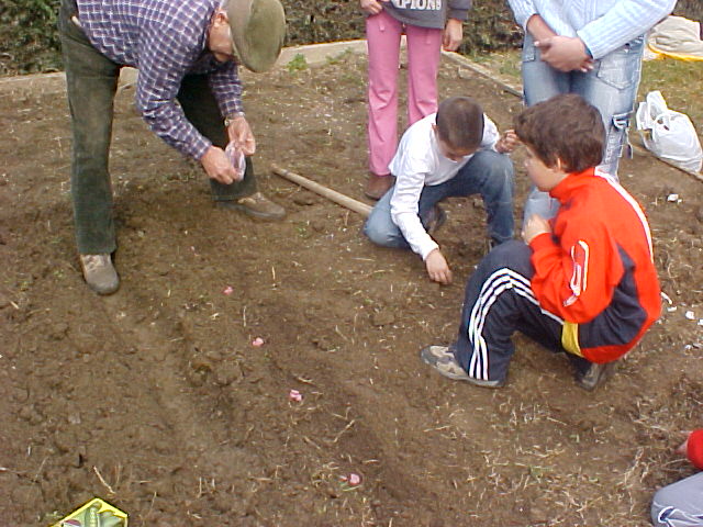 *Plantem bulbs de ceba i d'alls.