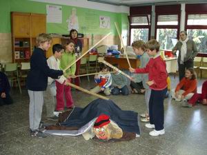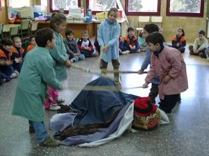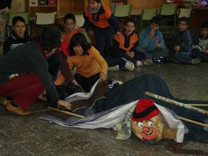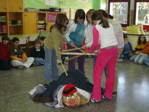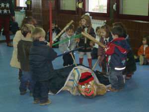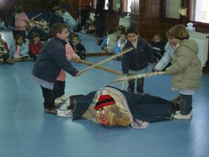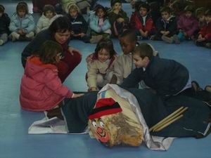 Caga tió, caga turrons, d'avellanes i pinyons, si no cagues bé et donaré un cop de bastó!