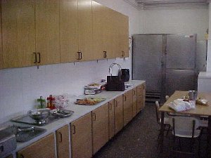 la sala d'audiovisuals, el menjador i la cuina.