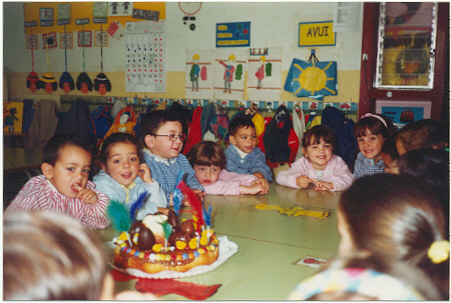 Al llarg dels últims dies els nens i nenes d'Educació Infantil van portant llaminadures, plomes, pollets, etc... per guarnir les mones. Els nens i nenes d'aquest cicle preparen el pa de pessic de la mona el dia abans a classe. I l'últim dia del trimestre, la guarneixen i se la mengen.