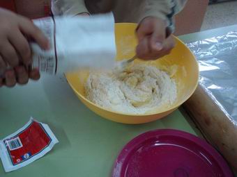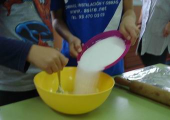 3. Afegim el llevat i el sucre i la farina. |
