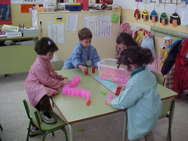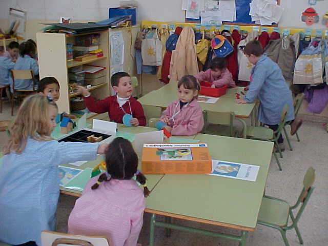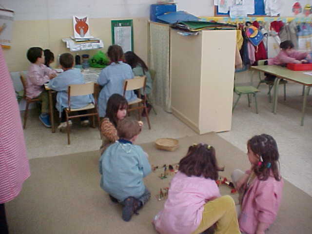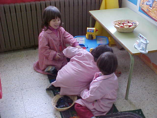 la mestra els més petits, i sols ,els més grans; el gomet al
