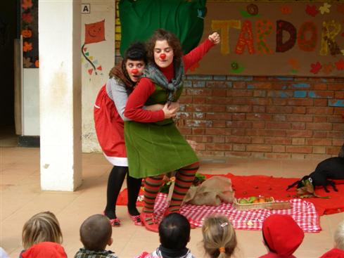 La castanyera visita als nens del Sant Jordi.