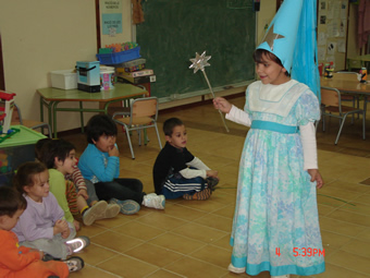 Els divendres per la tarda els nens i nenes d'Educació Infantil fan l'hora del conte. Cada dia hi ha dos nens/es protagonistes: