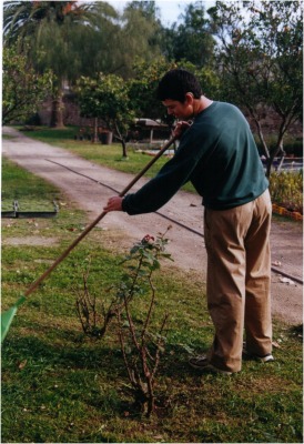 Eh! Soc en Marc. Tinc 19 anys i m'agrada molt la jardineria. Aquí estic passant l'escombra per la gespa per treure les fulles seques. La neteja del jardí és molt important, doncs les plantes pateixen molt amb la brutícia.