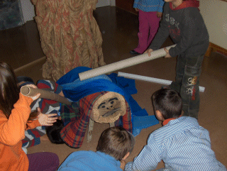 Fent cagar el tió. |