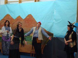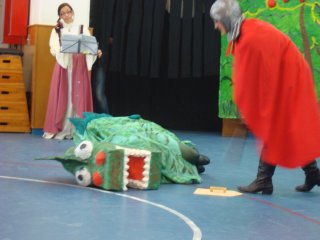 LES MARES DE L'ESCOLA ENS REPRESENTEN LA LLEGENDA DE SANT JORDI.
