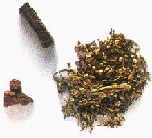 o herba: Es prepara assecant les flors, petits troncs i fulles del cannabis sativa, el contingut de THC és del 5% al 10% Haixix