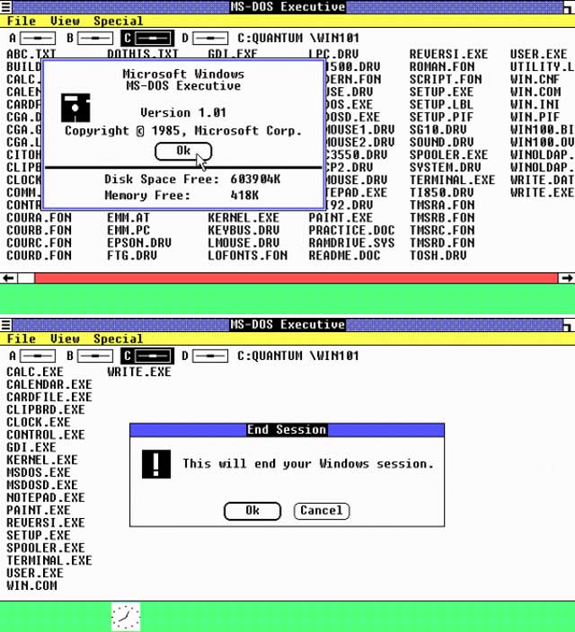 Aquesta versió va ser publicada al 1985. No era massa potent, estava molt limitada a causa de que Apple no permetia imitacions de les seves interfícies d’usuari. Per exemple, les finestres només podien disposar-se en mosaic, no hi havia “paperera de reciclatge”, els programes inclosos tenien poc atractiu pels usuaris professionals.