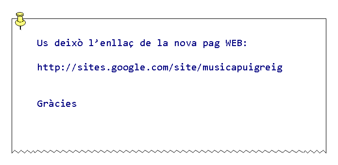 C/ Joan Maragall, 608692 Puig-reigCorreu electrònic: escmusicapuig-reig@xtec.catTelèfon: 938290226 |
