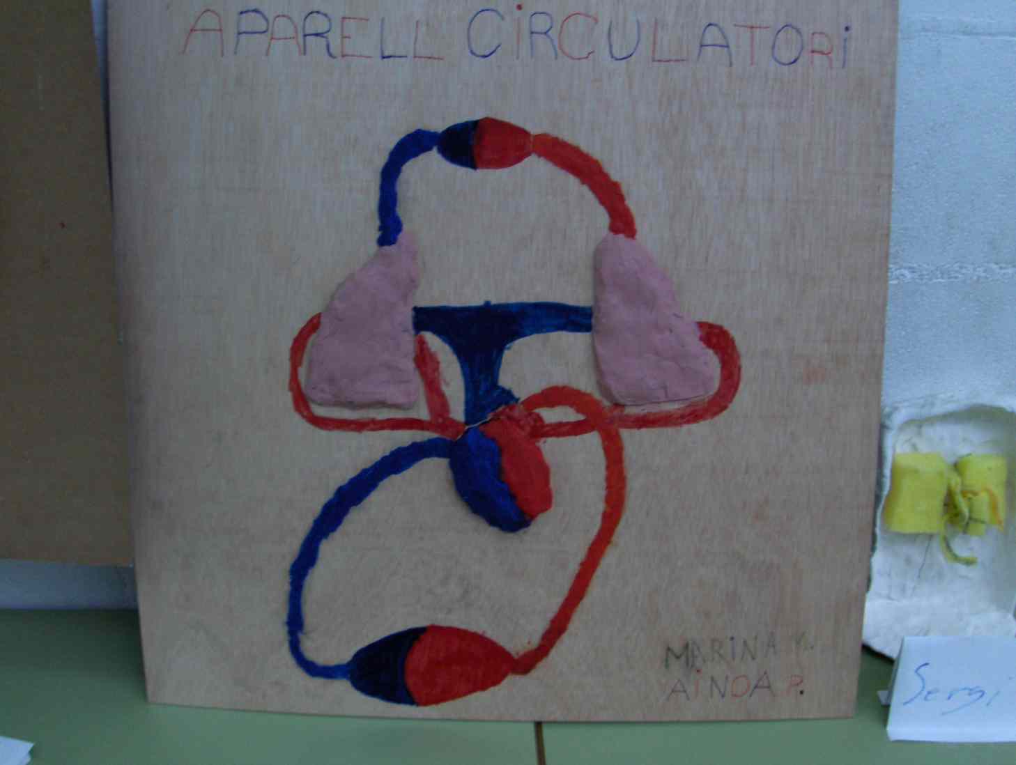Un cop acabat el tema del cos humà , a l’aula natura es van donar petites orientacions de com podíem construir una maqueta que representés l’aparell circulatori, i on quedessin especialment reflectits el cor, les seves parts i els pulmons, lloc on la sang pot agafar l’oxigen .