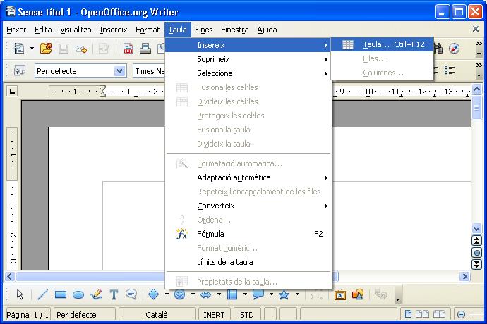 Dibuixa una taula de 2 columnes d'amplada i 6 fileras. Per fer-ho has d'anar al menú Taula>Insereix>Taula.