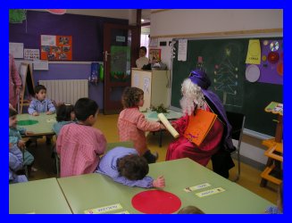 Els nens i nenes d'educació infantil reben el patge reial, li fan un munt de preguntes. |