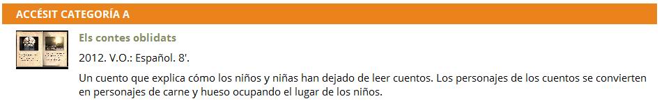 | 2011 -12 Accessit al primer premi. Festival de Cinema Jove de València 2012 | ||||||||||||||||