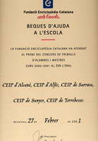 | El curs 2001-02 la Fundació Enciclopèdia Catalana ens atorgà una beca per dur a a terme el projecte "Arrels" que fou treballat al llarg de tot el curs. La Beca fou un veritable premi i estímul per tots plegats. | ||||||||||||||||