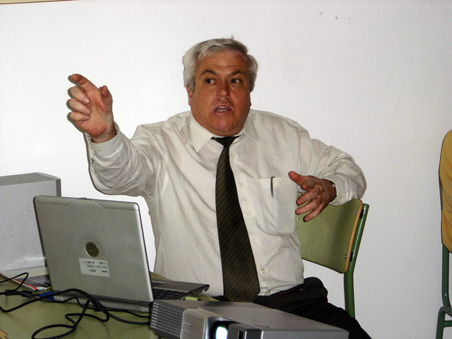 Conferenciants amb membres de la direcció i claustre del centre.