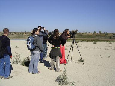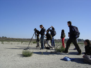 Sortida dels alumnes de primer curs del cicle formatiu de recursos naturals i paissatgístics a l'estany d'Ivars per apendre el funcionament de les ulleres de llarga vista (Catalejo) amb els diferents oculars.
