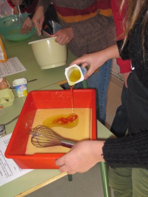 10.Un cop el forn estigui ben calent afegir la massa a la safata.
