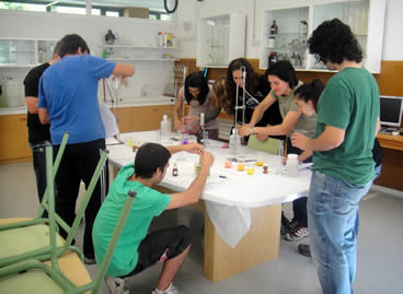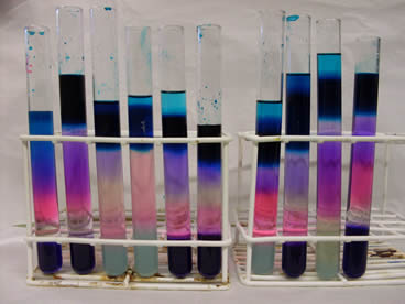 Un còctel molt vistós, pràctica de laboratori amb els alumnes de 3rESO.