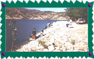 Escenario del campeonato. Pescadores en acción de pesca.