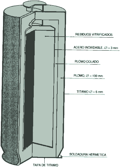 -Residuos líquidos de alta actividad. -Solidificados procedentes de la reelaboración del combustible irradiado (1) -Combustible irradiado (2) |