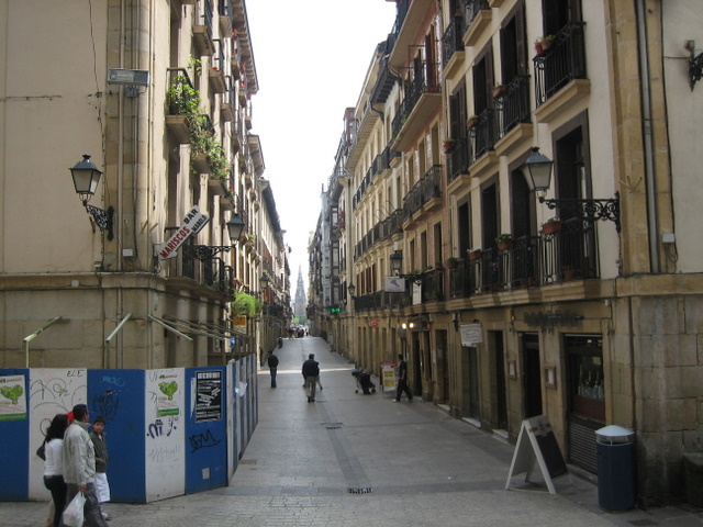 Al pie del Monte Urgul, protegido de los vientos del Norte,existió desde muy antiguo un pequeño núcleo de pescadores, origen de la actual Donostía-San Sebastián. Los habitantes viven cara al mar y se hacen famosos, ya en la Edad Media, en la caza de la ballena y en la pesca del bacalao, llegando en su persecución hasta los bancos de Terranova. El primer fuerte sobre Urgull, en el emplazamiento del actual castillo de la Mota, fue obra de Sancho VII el Fuerte. Los siglos y los reyes ampliaron sus defensas, en él estuvo prisionero Francisco I de Francia, tras su derrota en Pavia. Desde la calle mayor aun extremo se ve la iglesia de Santa María y al otro extremo la catedral del Buen Pastor. |