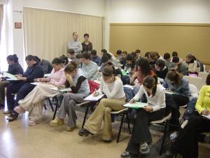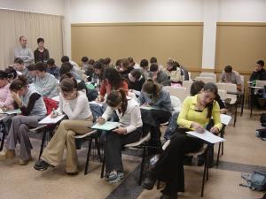 Quan vam arribar a l'universitat l'autobús no va tenir millor lloc per aparcar que just al costat d'uns contenidors d'escombraries que, bona olor no feien.Després de passar el primer incident ens vam embarcar pel llarg camí que anava de l'autocar a la universitat. Un cop dins vam pujar cap a l'aula on ens disposavem a fer la prova. Mireu si són desconfiats que ens van posar alumnes intercalats per tal de que no ens copiessim les respostes. Al damunt de cada taula hi havia un bolígraf de marca CANGUR que a més d'un se li va trencar. La pela és la Pela, no hi havia pressupost per comprar uns bolis de millor qualitat.