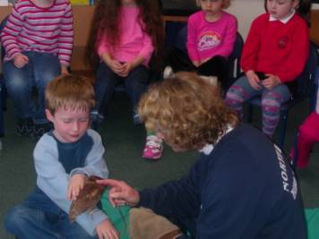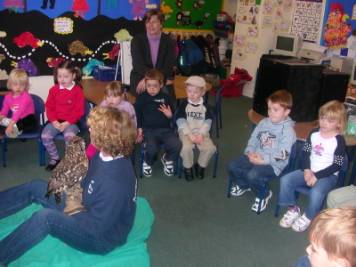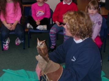 Otis' sat on one of our classmates' arm whilst he stroked him. The owls that we saw were very tame but this is not the case in the wild. |