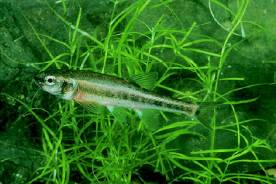 Minnows can live in a wide range of rivers, including all rivers on Snowdonia, from fast flowing upland streams to slow flowing lowland rivers.These fishes are only about 10 cms long, and are thin with a deeply forked tail fin. A single minnow would be easy for kingfishers, dippers and carnivorous fish to catch so they live in large shoals, sometimes with other kinds of fishes, and can swim very fast. When a predator tries to catch one, it may be confused by all the sudden movements of the shoal. Even when one is caught, the others have a chance to get away. Minnows feed on minibeasts, including freshwater shrimps, plants and algae. Minnows lay lots of eggs which can stick on stones in shallow water. These hatch into small fry within 2 or 3 days. |