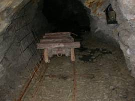 When we went underground it was very dark. Here is a small tunnel with a cart on it. The carts used to run on train tracks. We had to bend down to walk through the tunnels which connected the huge caverns. |