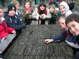 This is a miners cottage . We went inside and it was very small. It had three rooms, a kitchen, front room and a small bedroom. This cottage was owned by a very famous harp player who used to play the harp for the miners. His name was David Davies. Can you see the slate roof? |
