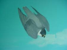 the Peregrine falcon swooping to catch its prey. It nests near our school