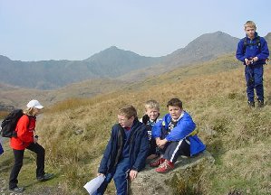 ![]() This is a picture of some of our friends sitting on a rock. The furthest mountain to the left is the biggest mountain in England and Wales, called Snowdon. It is 1089meters high! We didn't walk up to the top though! |