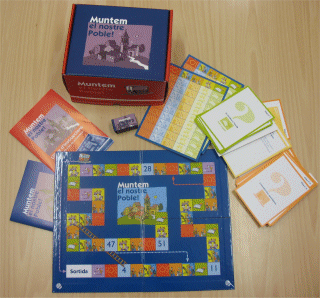 El material Muntem el nostre poble es presenta en una caixa que inclou les fitxes del joc, la guia didàctica per al professorat i un llibre d’instruccions.