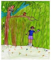 Havia anat d’ excursió amb uns amics a la muntanya. Tots anàvem caminant i parlant en grupets, però jo em vaig quedar enrere per voler fotografiar un esquirol petit que s’amagava darrera un arbre. Quan me’n vaig adonar, m’havia quedat sol. Vaig anar seguint el camí i entretenint-me totmirant el paisatge, però de sobte, em vaig trobar al mig del bosc. Havia agafat un camí que no era. Després de donar una volta pel bosc i no trobar res més que arbres, em vaig perdre. Com és normal, no hi havia cobertura i no podia trucar. Estava bastant espantat, però vaig proposar no perdre la calma. Així doncs, vaig anar caminant per veure si trobava alguna cosa. Quan el sol començava a baixar vaig trobar una caseta de fusta. Estava salvat! Vaig trucar a la porta i em va obrir un home: