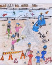 Eren unes màquines molt grosses que estaven tirant les torres elèctriques. Els obrers van explicar que també netejarien el riu i així es podrien banyar en el riu i jugar a pilota i anar amb bicicleta.