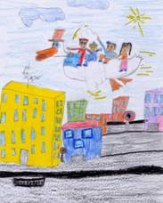 Van viatjar per damunt del barri del Besòs i van veure el Parc del Besòs, on hi havia uns nens jugant, el polisportiu Besòs, el Centre Cultural, els camps de futbol, els parcs i les places plenes de gent passejant.