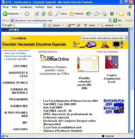 en la pàgina web sobre Diversitat i NEE a l'XTEC http://www.xtec.net/dnee/