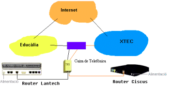 El router Lantech està programat per trucar a Educàlia com a proveïdor de connexió a Internet. Establerta la connexió podeu utilitzar qualsevol lector de pàgines web, Netscape o Explorer són els més populars, per navegar per la xarxa.
