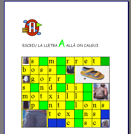 omplir una graella amb dibuixos que portin una determinada lletra ... Els exercicis es poden realitzar directament a l’ordinador, o bé imprimir-se i fer-se sobre paper.