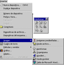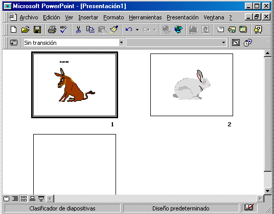 Posar una imatge amb el menú Insertar | Imagen | Desde archivo, escolliu el fitxer i fer clic a Insertar. Feta la primera diapositiva heu de preparar les altres amb el Menú Insertar | Nueva diapositiva, on escolliu el format en blanc fent doble clic. D'aquesta manera anireu afegint diapositives noves fins a completar totes les escenes de la història. Podeu desar la presentació amb el menú Archivo | Guardar i veure-la amb les opcions del menú Ver | Presentación con diapositivas o amb el menú Presentación | Ver presentación.