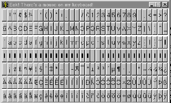 - mapa de caràcters, mostra una graella de 7 files x 32 columnes que presenta els 256 caràcters (els 32 primers no apareixen perquè són caràcters de control) i presenta les lletres ordenades alfabèticament. Aquesta visualització permet escriure tots els caràcters disponibles.