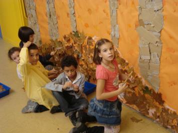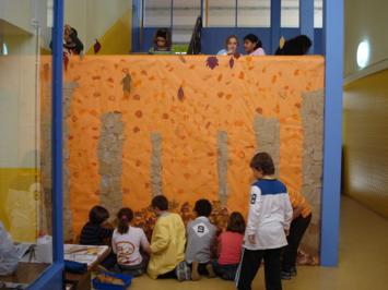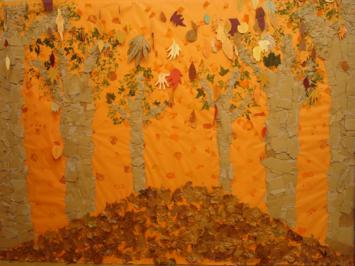 Hem decorat l'entrada de l'escola amb un paisatge de tardor per a celebrar la castanyada, aquest any, amb un xic de calor....
