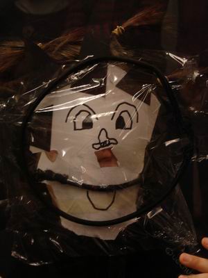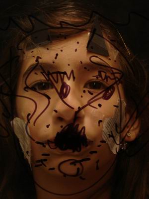 Per acabar la visita, hem fet un taller en grups de 3 persones. Una feia de model i les altres havien de transformar-li la cara en un quadre abstracte. Ha estat molt divertit! Aquí estan els resultats... |